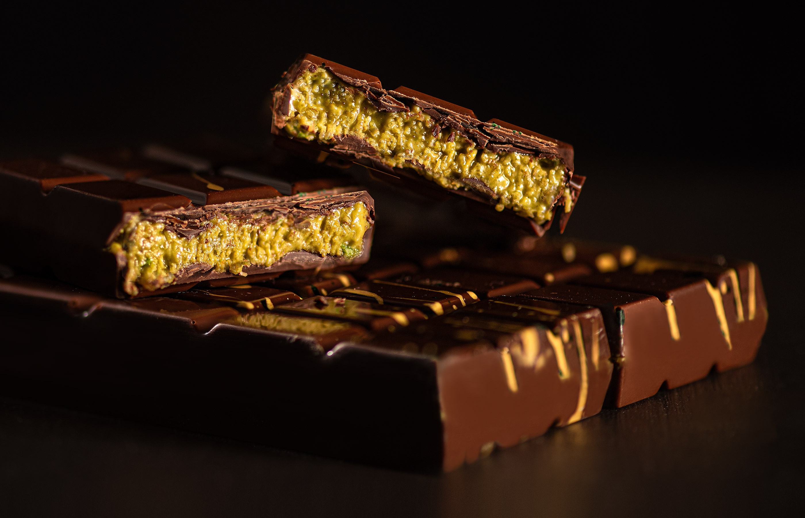 Zutaten: Gemahlene Pistazien, Kakaobutter, Milch, Gluten, Salz, Sesam, Kadayif, Kakaomasse, Emulgator Sojalecithin, natürliches Vanille-Aroma, kann Nüsse enthalten